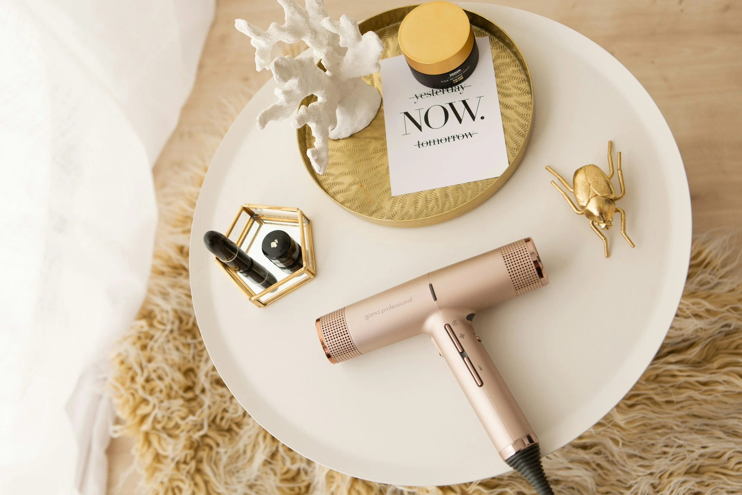 A place to hang your handbag as well as a few necessities are always kept close to your styling chair. Hand lotion, a mug warmer to keep your tea hot, & a wireless phone charger are just a few things to keep you comfy during your appointment.